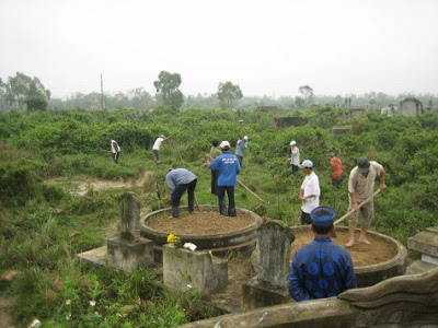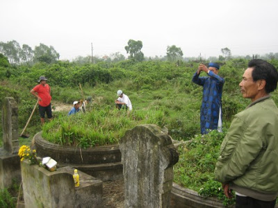 Sau đó dân làng bắt đầu chạp cô mộ.