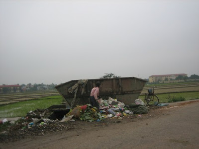 Bên thùng rác ven đường chị buôn chai bao cố nhặt nhạnh cho đủ phiên chợ cuối năm.